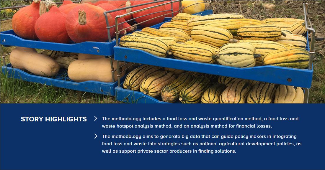 The UN Economic Commission for Europe (UNECE) launched a code of good practice for handling fresh produce to minimize loss along with a methodology for measurement. This methodology for measurement aims to simplify and ensure the systematic measuring of food loss and waste at several key points of the fresh produce supply chain. It includes a food loss and waste quantification method, a food loss and waste hotspot analysis method, and an analysis method for financial losses. It builds on existing methodologies in assessments globally and recent studies. The formulas are applicable at the production, post-harvest, wholesale, transportation and packing stages of the fresh- produce supply chain. They can be used by farmers, wholesalers, transporters and packing houses.